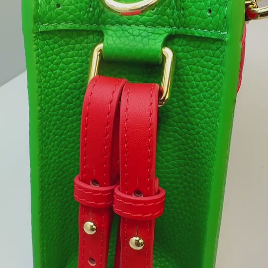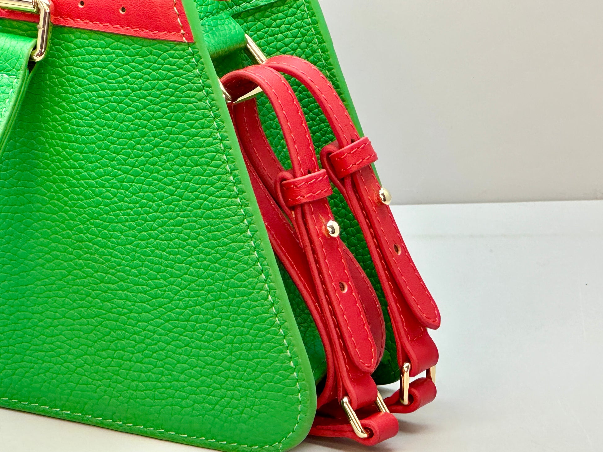 Introducing The Emerson Bag - a stunning medium-sized handbag crafted from premium French full grain calfskin leather in a vibrant green hue.
